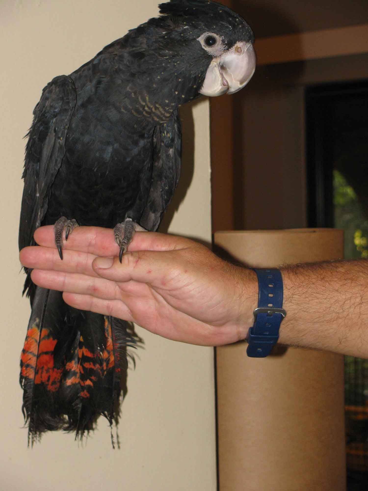 Bird Description: Beautiful Red Tail Black Cockatoo male. He is about a year old and is a big sweet mush. Please inquire for more information.